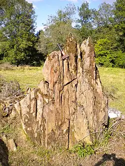 Serpentinite bodies can also be found southeast of Merlis, like near Saint-Bazile and Oradour-sur-Vayres, Champagnac-la-Rivière (with six small bodies), La Martinie (south of Champagnac-la-Rivière), La Boissonnie and Lageyrat (west of Châlus) and La Rougerie (east of Dournazac). Slightly off-set to the northwest are two occurrences near Cussac.