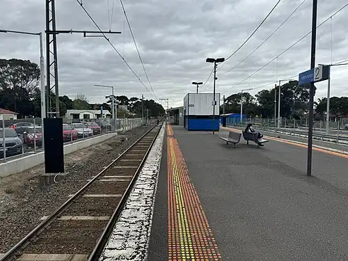 In November 1998, the level crossing at Shorts Road, south of the station, was closed,[8] and a dead-end street was created on either side of the railway line. Until the track was duplicated to Gowrie in that year,[9] the line north of the station had only a single track, apart from the island platform at Gowrie, which had two platforms. However, one of those was a dock platform,[10] meaning trains couldn't pass each other at Gowrie, and had to do so at Merlynston.