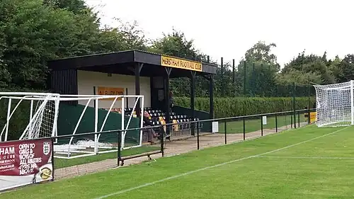 The club originally played at Limeworks Meadow, a pitch based in the Merstham Lime Works.[3] Players initially had to change in nearby hedges before being allowed to use the nearby Jollieffe Arms pub.[3] In the early 1910s the club temporarily relocated to the Weir ground.[3] They moved to Moatside in the early 1920s.[3] Changing rooms were built in 1960 and a 90-capacity stand opened in 1974.[3]