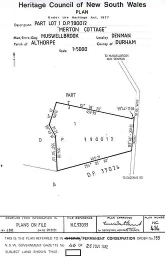Merton is a heritage-listed former farm, horse stud, village settlement and residence and now residence at 4883 Jerrys Plains Road, Denman, Muswellbrook Shire, New South Wales, Australia. It was built between 1825 and 1910; and it was added to the New South Wales State Heritage Register on 2 April 1999.[1]