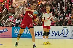 Merve Adıyaman (born 12 September 1994), also known as Merve Özbolluk, is a Turkish women's handballer, who plays in the Turkish Women's Handball Super League for Üsküdar Bld. SK, and the Turkey national team. The 1.80 m (5 ft 11 in)-tall sportswoman plays in the right back position.[1]