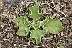 The plant usually uses C3 carbon fixation, but when it becomes water- or salt-stressed, it is able to switch to Crassulacean acid metabolism.[4] Like many salt-tolerant plants, M. crystallinum accumulates salt throughout its life, in a gradient from the roots to the shoots, with the highest concentration stored in epidermal bladder cells. The salt is released by leaching once the plant dies, resulting in a detrimental osmotic environment preventing the growth of other, non-salt-tolerant species while allowing M. crystallinum seeds to germinate.[3]