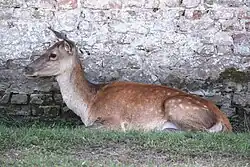 The Mesola red deer is closely related to the Barbary stag and the Corsican red deer, with whom it shares distinct genetic markers.[2] The latter two taxa descend from an ancient population of Italian red deer that otherwise survives only as the relict Mesola herd, which were imported to the Tyrrhenian islands and North Africa during antiquity, and have lower genetic diversity than that which is noticeable in subfossil remains of mainland deer.[2][3] The precise relationships between the three subspecies are however partly obscured by their all having undergone significant genetic bottlenecks, therefore obscuring potential founder effects.[3]