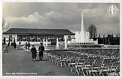 During the Nazi era, the Reich Exhibition Schaffendes Volk took place on the site of today's Nordpark in 1937.[5] This exhibition was strongly influenced by Nazi propaganda and served to showcase the National Socialist world view and the supposed superiority of the German people. Düsseldorf was named "Destination of the Year 1937" to attract as many visitors as possible. Achievements in the fields of materials, industry and economy, spatial planning and urban development, as well as garden culture and art were shown. Numerous buildings, sculptures and green spaces were built especially for this event and can still be seen in the Nordpark today. The exhibition highlighted the close links between trade fair activities and political propaganda during the Third Reich.