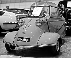 The Messerschmitt KR200, or Kabinenroller (Cabin Scooter), is a three-wheeled bubble car designed by the aircraft engineer Fritz Fend and produced in the factory of the West German aircraft manufacturer Messerschmitt from 1955 until 1964.