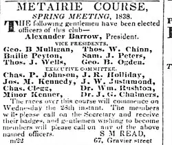 - ^ "Metairie Jockey Club Races". The Times-Picayune. New Orleans, Louisiana. March 8, 1839. p. 3 – via Newspapers.com.