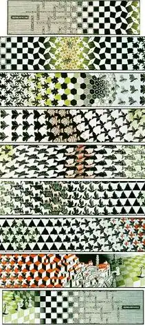 Metamorphosis III is a woodcut print by the Dutch artist M. C. Escher created during 1967 and 1968. Measuring 19 cm × 680 cm (7+12 in × 22 ft 3+12 in), this is Escher's largest print. It was printed on thirty-three blocks on six combined sheets.