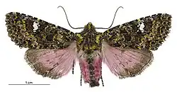 Meterana meyricci, also known as the rose underwing owlet,[3] is a species of moth in the family Noctuidae.[4] It was described and named by George Hampson in 1911 as Miselia meyricci.[5] It is endemic to New Zealand[2] and has been collected in and around Otago.[6] The larvae of this species feed on Pimelea species,[6] including Pimelea poppelwellii.[7] Adults tend to found on the wing during the months of January to March.[6]