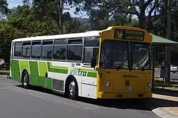 The MTT commenced operations with 43 trams, 63 trolleybuses and 17 buses in Hobart, 24 buses and 30 trolleybuses in Launceston and 16 buses in Burnie.[4][7] The MTT's first purchases were AEC Regal IVs.[31] Bedford SBs were purchased in the 1960s followed by Hino BT51s, Leyland Nationals, Volvo B58s, Volvo B10Ms, Mercedes-Benz OH1316s and Scania N113s followed.[4][32][33] More recent purchases have been Bustechs assembled locally by Elphinstone Engineering.[34][35]