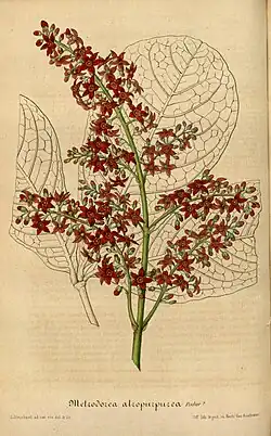 The genus name of Metrodorea is in honour of Metrodorus (c. 1st century BC), student of a healer named Sabinus.[2][3] It was first described and published in Fl. Bras. Merid. Vol.1 on page 81 in 1825.[1]