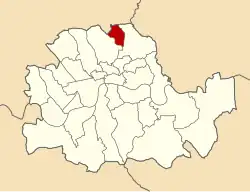 The first two options were rejected due to the experience of "intolerable and interminable feuds" between the districts when they were previously "forced together", and because the First Lord of the Treasury, Arthur Balfour recognised that there was "great ill-feeling and mutual ill-will... between the inhabitants of the two districts";[4] it was therefore decided to merge the bulk of South Hornsey, with a population about 20,000, with Stoke Newington. While this still created a borough of only about 50,000 inhabitants, and thus "the smallest borough in London, the anomaly would be a gradually diminishing one, because the population in this district was rapidly increasing. When dividing London up into boroughs they could not avoid creating some anomalies as to size."[5]