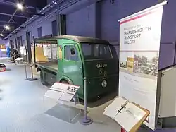 Three MetroVick milk floats have survived into preservation. All were operated by dairies in Sheffield, close to MetroVick's factory. Kelham Island Museum have an 18-22 cwt model, supplied to the Sheffield and Eccleshall Co-operative Society in 1940, and used by them until the 1990s. It was then given to the museum, who used it to move things around the museum site, prior to it becoming a static exhibit. It carries a green livery,[18] and the registration number GWJ 586.[19] A second Sheffield and Eccleshall Co-op vehicle is displayed at the South Yorkshire Transport Museum in Aldwarke, Rotherham. It dates from 1940, and carries the registration number GWE 606.[20] The third is another 18-22 cwt model, supplied as part of the first batch of 36 electric vehicles bought by the Brightside and Carbrook Co-operative Society in 1938. It carries the registration number FWB 784, and remained in commercial service until the early 1970s. After withdrawal, it was donated to an enthusiast in Sheffield and spent some time at the Sheffield Bus Museum, before moving to The Transport Museum, Wythall in 1997. Major restoration work is required, but meanwhile it is on public display in its unrestored state.[5]