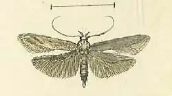 The wingspan is about 14 mm. The forewings are pale brownish cinereous (ash-grey), thickly sprinkled with fuscous, the base more suffused than the outer half on which the sprinkling is more visible, spreading over the pale cinereous cilia, in which it tends to form three parallel sinuate dividing lines converging to the apex. Three small fuscous dots are faintly indicated, one on the cell very faint, one slightly stronger in the fold preceding it, and one at the end of the cell. The hindwings are grey.[2]