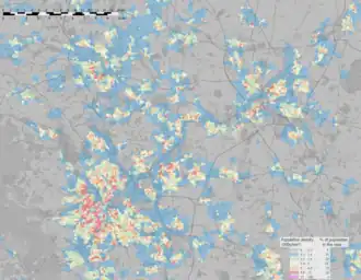Population density map, Sheffield, Doncaster, Rotherham and Barnsley