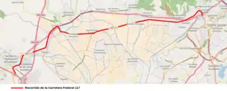 Federal Highway 117 (Carretera Federal 117) is a Federal Highway of Mexico.[3] The highway travels from Tlatempa, Tlaxcala in the north to San Martín Texmelucan, Puebla to the south.
