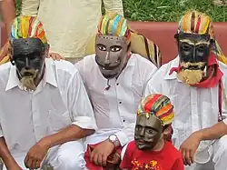 Masks in Mexico are used in a wide variety of dance, ceremony, festivals and theater, with their wearing not separate from the event in which they are used.[24][25] The most common uses are in traditional dances, which are a form of theater, with characters, storyline and music, but the performers are not professionals.[19][26] The purpose of the masks is to convert participants into other beings or characters.[27] This element is so important in many events that if a dancer does not use a mask, he often wears dark glasses to indicate that he is not his normal self. A double sense of masking is to use dark glasses over a mask.[28]
