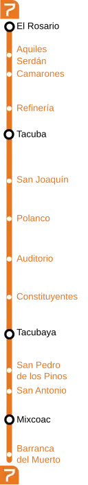 | Started operations | December 20, 1984: from Tacuba to Auditorio August 22, 1985: from Auditorio to Tacubaya December 19, 1985: from Tacubaya to Barranca December 29, 1988: from Tacuba to El Rosario |