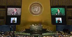 Since the beginning, Mexico has participated actively in the social and economic activities of the UN's various specialized agencies and other international organizations concerned with social, cultural, and economic improvement. However, due to restraints in the Mexican constitution, Mexico is prohibited from contributing troops for peacekeeping missions abroad unless Mexico has formally declared war on a country. Calls have been made from Mexican politicians to amend the constitution (mainly article 76) in order to partake in UN peacekeeping missions.[2] This situation started to change after President Enrique Peña Nieto's address to the General Assembly on 24 September 2014, when he stated that "Mexico has taken the decision to participate in U.N. peacekeeping missions, taking part in humanitarian tasks that benefit civil society".[3]