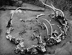 The site now known as Mezin 22 was found in the Dnieper valley of Ukraine in 1908. At this site, archaeologists discovered a shelter constructed of mammoth bones and skin, showing the importance of the mammoth to nomadic European cultures of the early Holocene.[11]
