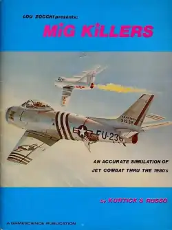 MiG Killers was designed by Michael Scott Kurtick and Rockland Russo, and was published by Gamescience in 1977. A supplement, MiG Killers Expansion Kit, was published the same year and included two more scenarios and larger aircraft data cards, although no new aircraft.[3] Gamescience promoted a further expansion called Air Strike that would introduce air-to-ground combat, but the expansion was never published.[3]