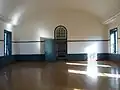 At the age of 22, Burnett changed the original layout of Pleasant Hill, much of which was on a north–south axis.[1] He reoriented the main road to run east–west, and designed and oversaw the construction of three new dwelling houses along it. The first two were brick structures home to the East and West Families, built in 1817 and 1821, respectively.[1] The third, construction of which began in 1824 and ended ten years later, was the dwelling of the Center Family.[1] Built of white limestone, the building is 55 by 60 feet with an ell of 34 by 85 feet.[1] Besides the three dwellings, Burnett designed the Pleasant Hill Shakers' Meeting House in 1820. A white clapboard structure, it is 60 by 44 feet.[1]