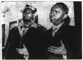 Mariano would emerge on the big stage after his successful business enterprise in Dire Dawa. Meeting Somali Youth League leaders, his expertise was sought out and Michael would join the party in 1947 and come to draft many of the key documents the SYL used to communicate with the British Somaliland and Trust Territory of Somaliland authorities.[9] His advocacy and position angered Ethiopian authorities who would eventually arrest Michael and his family. After feigning a divorce, Ethiopian authorities let him free but he was not allowed to return to the city.[10] In touch with many other anti colonial figure such as the renowned Sheikh Bashir (who once came to Mariano's home and demanded to know why he was assisting Somalis with their English-language learning in order to prepare for the yearly civil service exam),[11] Mariano's aptitude and great speaking ability brought him centre stage in the Haud dispute.