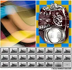 Meanwhile, he starts his first "Fotoforms" colors in an argentic system in order to explore the "movement memory".[7] In 1995, he's selected for a serie of magnifying-glasses paintings at "95 : Luxembourg : European city of culture". In the 90's, he creates computer-generated images that are exhibited on a flat screen at the villa Vauban[8] in Luxembourg in 2003.