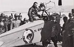 Allasia was born on 24 June 1893, in Ferrara, Kingdom of Italy.[2] Allasia was a lathe operator in civilian life. In 1913, he was accepted into the Battaglione Squadriglie Aviatori because of his skills with a lathe. When the war began, he enrolled[3] in the Busto Arsizio flying school. In late May 1916,[4] he received his pilot's license. He was assigned to fly a Farman for 37a Squadriglia,[2] which was tasked with the defense of Bergamo. He flew 40 fruitless sorties there, before being selected for training on Nieuports.[3]