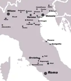 Although in the early part of his career he was engaged in the cities of central Italy, the place to which he linked his name more than any other was undoubtedly Verona. In addition to his hometown, where he was a main actor on the architectural scene, he was often called upon for consultations or projects outside the territories of the Serenissima.