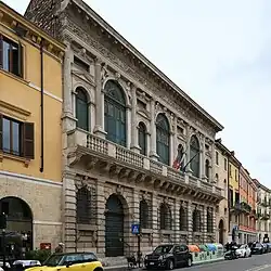 • Palazzo Canossa on Corso Cavour. Commissioned by Ludovico di Canossa, it was designed between 1526-28 and work began in 1531. Built almost simultaneously with Bevilacqua Palace, the two immediately acquired great urbanistic significance.[52][53]