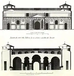 • "Upper" San Martino Gate in Legnago. Designed around 1529-30 and finished in 1535. Opposite the "lower" gate, it too was demolished[46] in 1887; its structure is known from 18th-century reliefs.