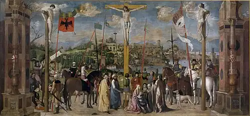 Information on his artistic activity is scarce and is mainly derived from a small group of signed and dated works. An isolated document attests that in October 1497, Michele da Verona was commissioned to estimate, together with his colleague Pietro Badile, a work by master painter Giacomo from San Zeno . In 1501 he signed and dated what is considered his masterpiece: the Crucifixion for the monastery of San Giorgio in Braida in Verona (since 1811 in Milan, Accademia di Brera), held by the canons regular of the Congregation of San Giorgio in Alga.