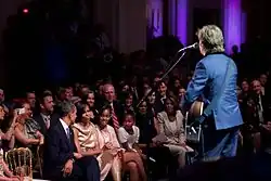 On 2 June 2010, after being awarded the Gershwin Prize for Popular Song by President Barack Obama in a ceremony at the White House, McCartney performed the song for Michelle Obama, who sang along from her seat. McCartney quipped, "I could be the first guy ever to be punched out by a president."[60][61] Michelle Obama reportedly later told others that she could never have imagined, growing up an African-American girl on the South Side of Chicago, that someday a Beatle would sing "Michelle" to her as First Lady of the United States.[62]