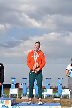 She participated at the 2018 World Modern Pentathlon Championships, winning a silver medal in the mixed relay.[3]