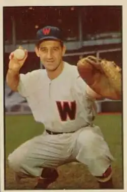 Newton Michael Grasso (May 10, 1920 – October 15, 1975) was an American professional baseball catcher and veteran of World War II who, after over two years as a Prisoner of War of the Germans,[1] played all or parts of seven seasons in Major League Baseball. He appeared in 322 total games for the New York Giants in 1946 and 1955, the Washington Senators from 1950 to 1953, and the Cleveland Indians in 1954. The Newark, New Jersey, native stood 6 feet (1.8 m) tall and weighed 190 pounds (86 kg); he batted and threw right-handed.
