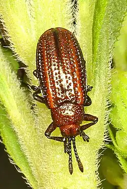 Microrhopala vittata, the goldenrod leaf miner, is a species of leaf beetle in the family Chrysomelidae. It is found in North America.[1][2][3] Adults emerge in April. Females lay their eggs in clusters of two to four and cover them in frass. [4]