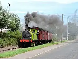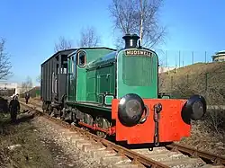 Steam was reintroduced in 1866 with tank engines from local firm Manning Wardle. In 1881 the railway was converted to 4 ft 8+1⁄2 in (1,435 mm) standard gauge allowing it to connect with the Midland Railway. Other extra links included one to the Great Northern Railway in 1899 and sidings serving other sources of freight including Robinson & Birdsell's scrapyard and Clayton, Sons & Co's engineering works.[8] The Middleton Estate & Colliery Co became part of the nationalised National Coal Board in 1947. Some rationalisation took place, the city centre staith at Kidacre street was closed and in the end coal movement was concentrated on the stretch of line from the GNR connection to Broom Pit. Preservationists mainly from Leeds University were allowed to move into an abandoned part of the line, between Moor Road and the GNR connection, by its then owners Messrs. Clayton, Son & Co. When Broom Pit closed in 1968 the preservationists, by then called the Middleton Railway Trust, were able to reinstate the connection and operate to the site of Broom Pit, maintaining the continuous operation of the line.[9]