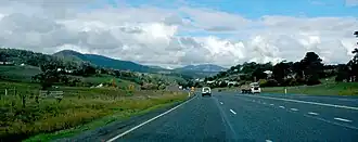 On 16 April 2020, the second and final stage of the Perth Link Roads project was officially completed over 3 years ahead of schedule, including the opening of the long-overdue bypass of Perth.[8] The bypass consists of 4.5 km of dual carriageway, including a grade separated interchange with Illawarra Road, an interchange consisting of two roundabouts north of the Perth, and a roundabout south of the town centre, near the South Esk River bridge.[9] Stage 1 of the project was completed in April 2018, including a new grade separated interchange at Breadalbane to bypass the existing roundabout which provides connections with Launceston Airport, Evandale and the old Midland Highway alignment to Youngtown and Kings Meadows. A new dual carriageway alignment was also constructed alongside the existing highway to connect the new Breadalbane interchange with the Perth bypass.[10]