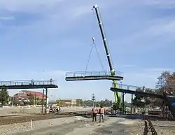 In 2020 a commitment from the government was to replace the 50 year old station to the west, with the development of a new Midland station partway between the then-current Midland station and the location of the original Midland Junction station.[8] In 2024, the new Midland railway station was under construction.[9] The old platform was demolished in 2024 to make way for the new level crossing at Cale Street.