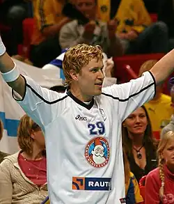 ![]() Mika Kohonen celebrates a goal during a Finnish national team game | |