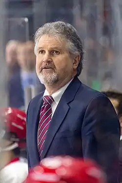 Mike Schafer was the men's ice hockey coach at Cornell University from 1996 until 2025. He graduated from Cornell in 1986 with a degree in business management after leading the team to its first conference tournament championship in six years.[2] Schafer retired as a player after his senior season and immediately became an assistant with the Big Red. Schafer left his alma mater after the 1989–90 season, taking a similar position with the Western Michigan Broncos of the CCHA. Five years later, after a downturn in the program that saw three consecutive losing seasons (including back-to-back single digit-win years) Cornell replaced Brian McCutcheon with Schafer as head coach. Schafer quickly returned the Big Red to prominence, winning the ECAC Hockey conference tournament his first two seasons back in Ithaca. Schafer has remained with Cornell ever since, becoming the longest tenured and the winningest coach in team history.[3]
