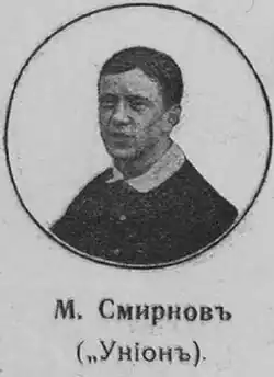 Mikhail Nikolayevich Smirnov (Russian: Михаил Николаевич Смирнов) (1881 in Moscow – 1957) was an association football player. Smirnov made his debut for Russia on June 30, 1912 in a 1912 Olympics game against Finland.[1]