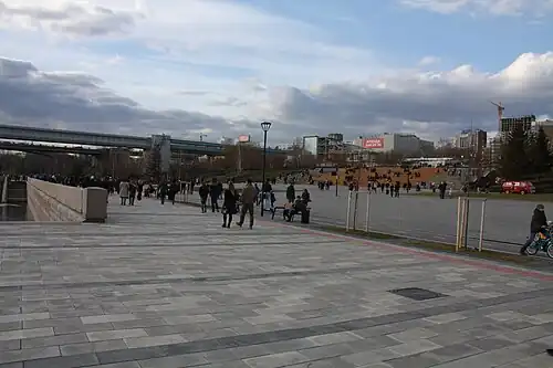 Before the creation of the embankment, there was a water-ski station with an outdoor swimming pool and diving towers built in the early 1930s.[1]
