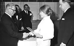 The grand prize was awarded to Antti and Vuokko Nurmesniemi for an exhibition display,[2] and a gold medal to Ilmari Tapiovaara for cutlery,[2] and Gae Aulenti first prize for her work on the Italian pavilion.[3]