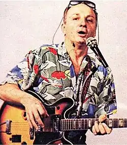 In 1958, Lojpur started performing in Belgrade with Sekstet M (trans. Sextet M), led by trumpeter Mile Nedeljković, which were one of the first performers of the so-called "električna muzika" ("electrical music", an expression the Yugoslav media used in 1950s and 1960s for rock music).[1] They initially performed in Texas club in Cetinjska Street,[3] and in Obilićev Venac student diner, popularly known among Belgrade students as "Tri kostura" ("The Three Skeletons'").[1] In 1959, the group changed their name to Septet M (Septet M), performing under that name until 1965.[1] Septet M rose to fame on the dances organized at Red Star basketball courts at Kalemegdan Fortress, and on their summer performances in city of Rovinj, situated on the Adriatic coast.[1] Their Belgrade performances, entitled Zvezdane noći (Starry Nights), consisted of covers of international rock and roll hits.[1] Working as a secretary in Avala Film studios in Košutnjak, Lojpur had the opportunity to watch films featuring Elvis Presley before they were shown in Yugoslav cinemas, modeling his stage appearance and performances after Presley's.[1] Lopjpur became famous for his spectacular appearance and microphone attached to his guitar.[1] His song "Šumadijski twist" ("Šumadija Twist"), a cover of "Blue Suede Shoes", gained significant local popularity.[1] At the time, he got his nickname "Mile Najlon" ("Mile Nylon") as being one of the first young people in Belgrade who wore nylon shirts.[1] On 4 March 1960, Lojpur performed at a concert in Kolarac Concert Hall, the Yugoslav press announcing him as "Belgrade's Elvis Presley".[1]