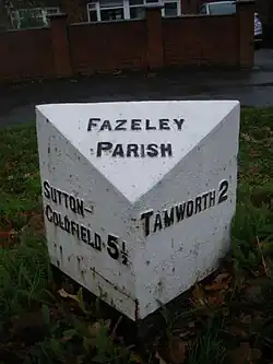 - ^ "MILEPOST AT NGR 1820 0234, Fazeley – 1038791 | Historic England". historicengland.org.uk. Retrieved 3 August 2025.