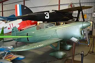 The aircraft uses solid wood spars. Fabric was attached using a relatively new process using screws with fabric tape covering, rather than conventional rib-stitching. The aircraft raced with a green livery waxed to a high gloss. Lee Miles died when a flying wire broke in a 1937 qualifying race.[1][2][3]