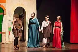 - ^ This scheme follows C. W. Marshall (2016), The stagecraft and performance of Roman comedy (Cambridge), who considers that the metrical sections begin each time with the unaccompanied iambic senarii.