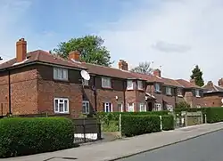 As the name suggests, it is a hilltop, looking south over Leeds down the A61 Scott Hall Road. The main part is the Miles Hill estate of 1920s council houses, brick built semi-detached and terraces.[1] A further estate, Beck Hill was built to the west in the 1970s, containing the (now closed and demolished in 2008) Miles Hill Primary School.[2][3]