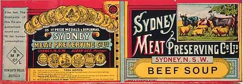 The Sydney Meat-Preserving Company (Limited) was established in 1871 by a private act of the parliament of New South Wales, for the purposes of "carrying on the business of meat preserving and disposing of and exporting the products". The operations of the company were governed by a deed of settlement which provided that a dividend should be paid to shareholders from the "clear bona fide net profits" of the company, although the board of directors could in its discretion set aside profits as retained earnings.[1]